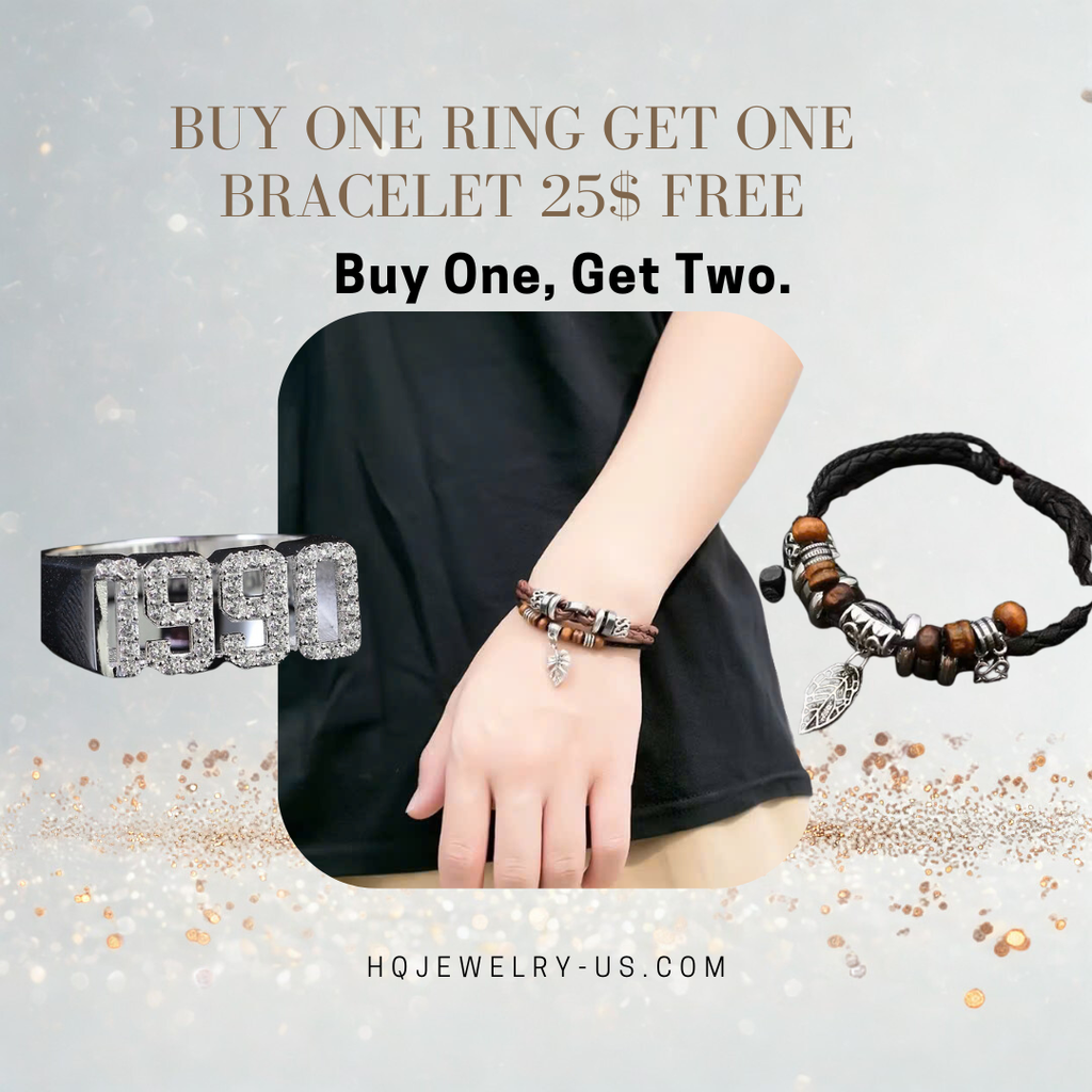 BUY 1 YearBirth Ring GET 1 FREE Men’s Leather Bracelet