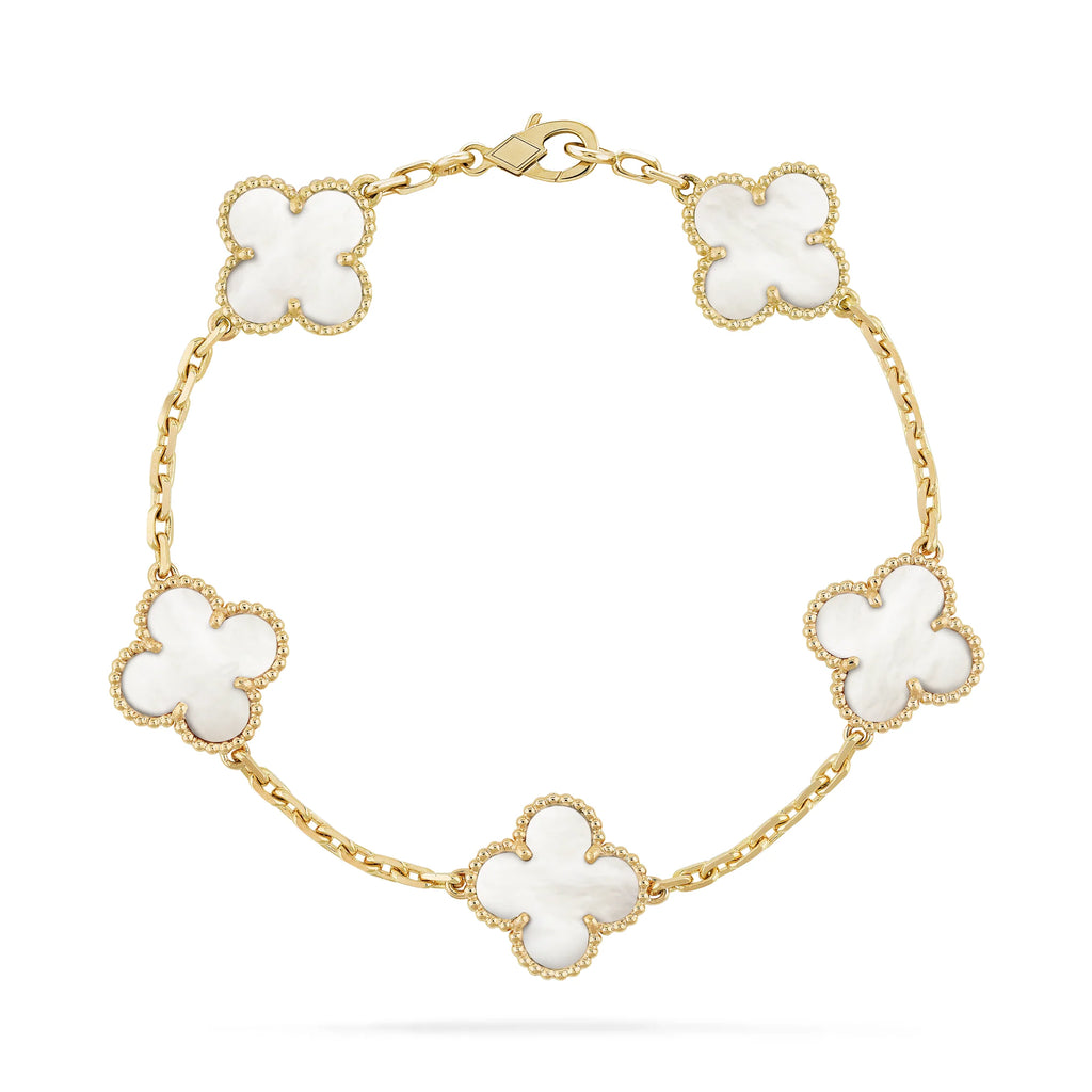 Four-Leaf Clover Bracelet – White Mother of Pearl, Rose Gold Vermeil, 925 Sterling Silver