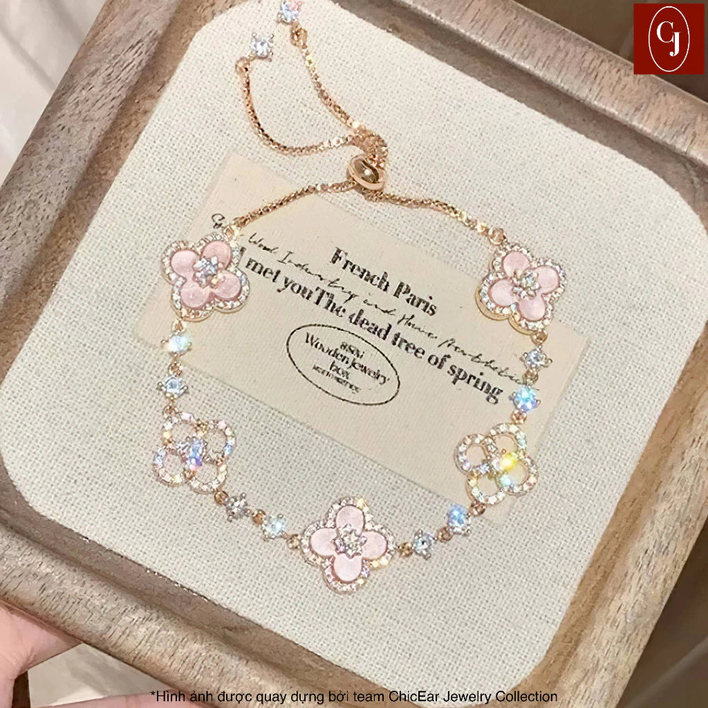 elegance and sparkle to your everyday look with this Four-Leaf Clover Crystal Bracelet, featuring soft Pink Mother of Pearl petals framed by shimmering crystals. Crafted with a premium Rose Gold finish, this bracelet blends feminine charm with timeless luxury. Each...